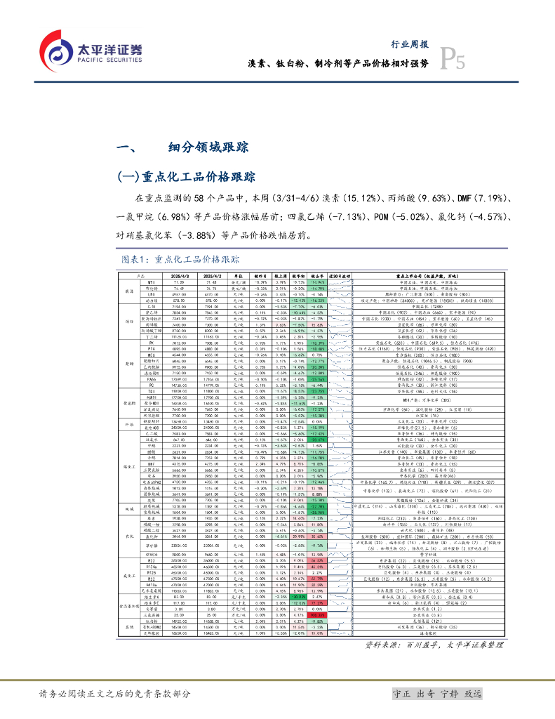 太平洋证券:化工行业周报:溴素、钛白粉、制冷剂等产品价格相对强势.pdf