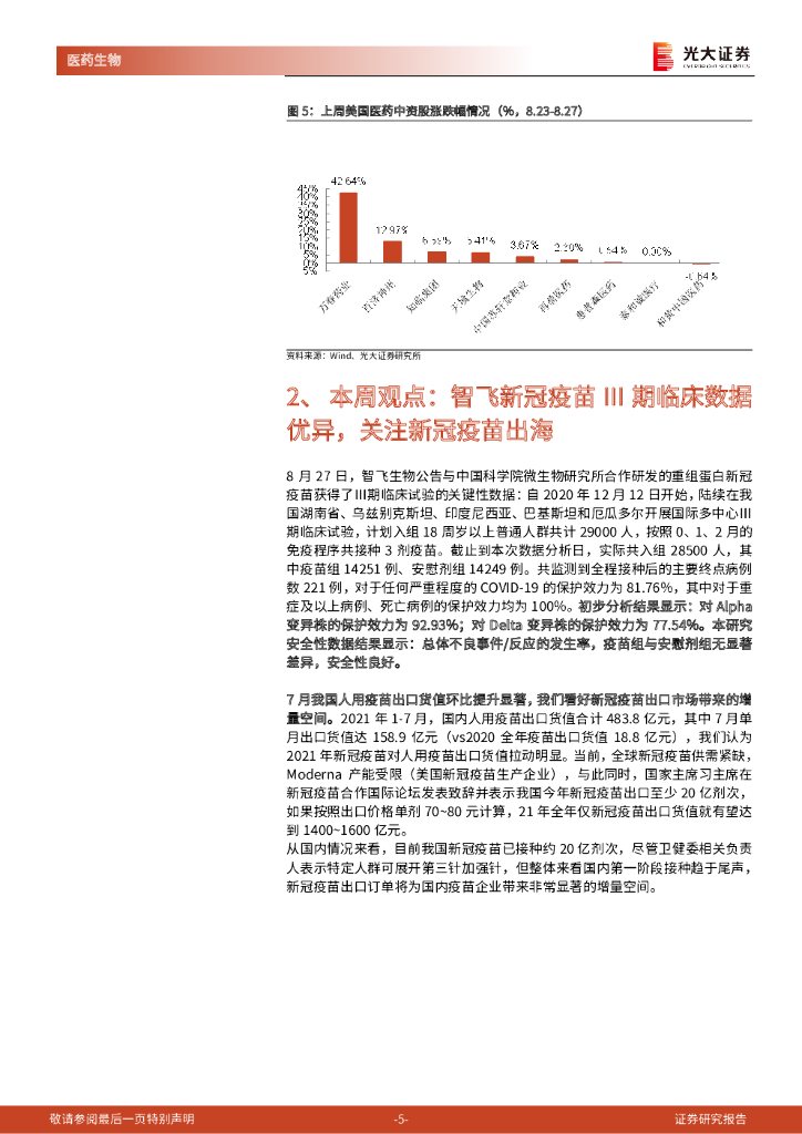 光大证券:医药生物行业跨市场周报:智飞新冠疫苗III期临床数据优异,关注新冠疫苗出海.pdf