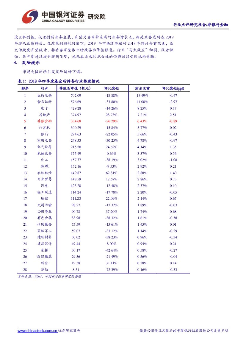 中国银河:非银行金融行业:2018Q4基金非银板块配置比例小幅回落,券商龙头股受青睐.pdf
