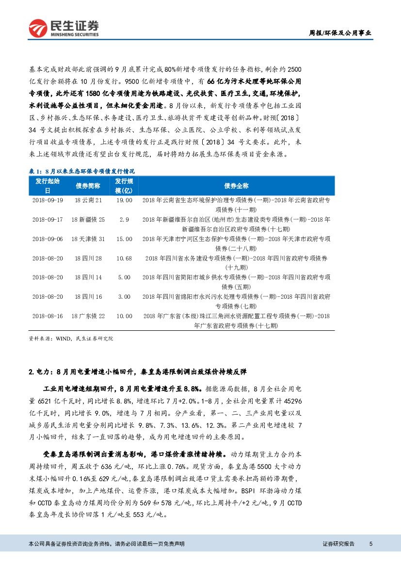 民生证券:环保及公用事业行业周报:环保专项债有望拓宽项目资金来源,秦皇岛港限制调出致动力煤持续反弹.pdf