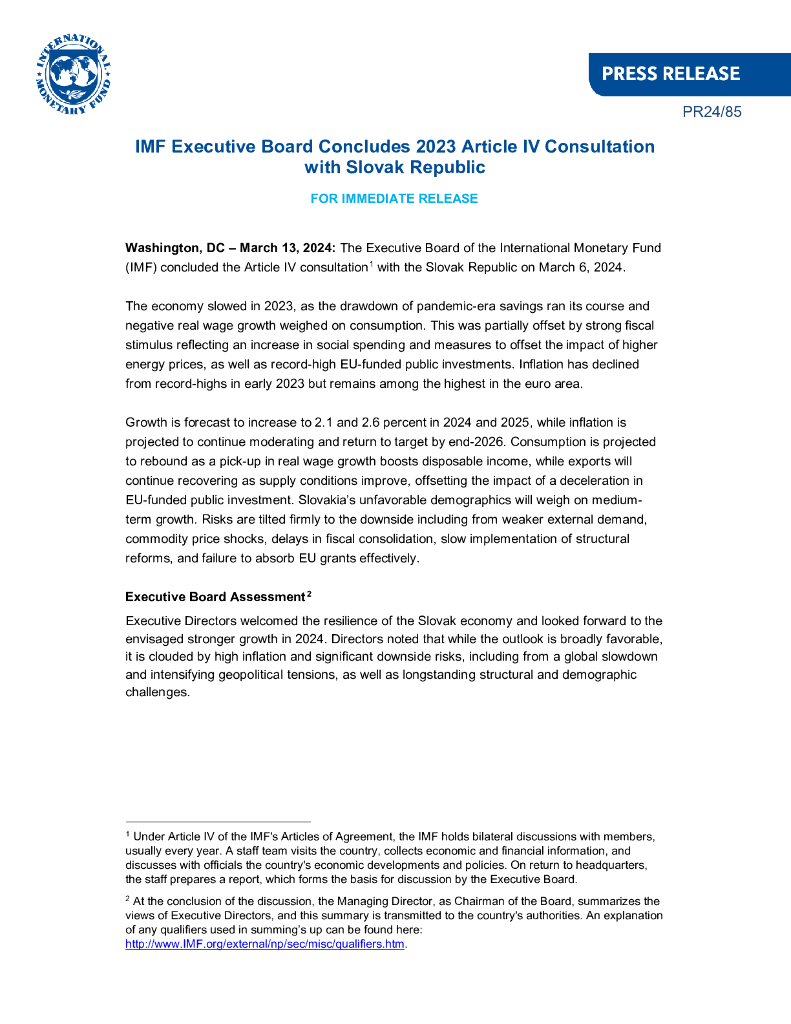 国际货币基金组织:斯洛伐克共和国:2023年第四条磋商新闻稿和工作人员报告(英文版).pdf