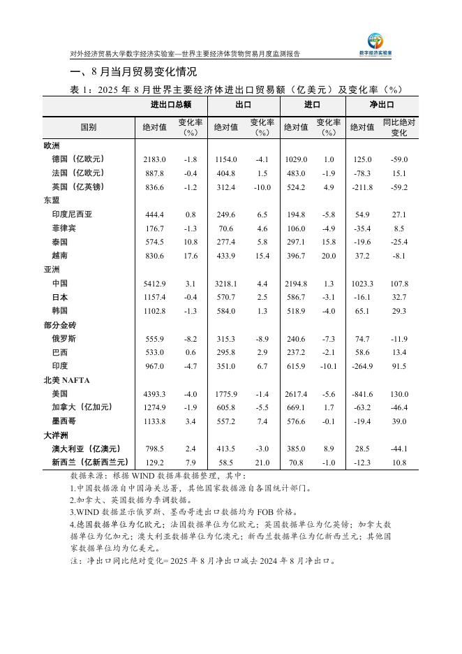 对外经济贸易大学:世界主要经济体货物贸易月度监测报告(2025年1-8月).pdf