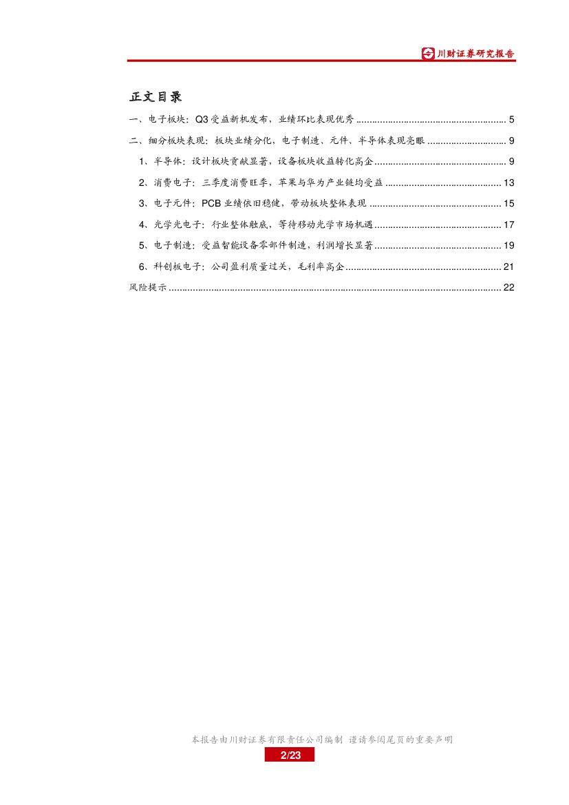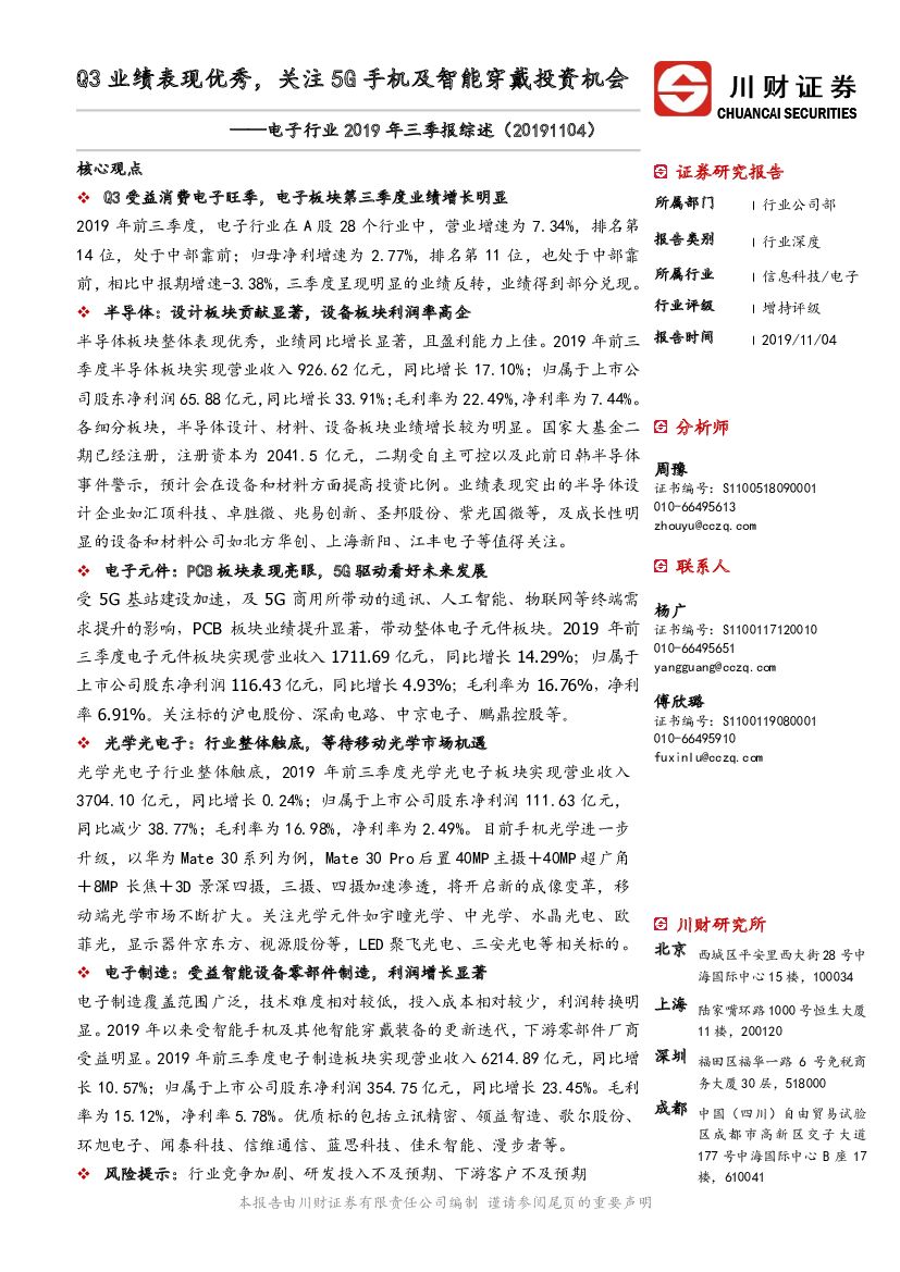 川财证券:电子行业2019年三季报综述:Q3业绩表现优秀,关注5G手机及智能穿戴投资机会.pdf