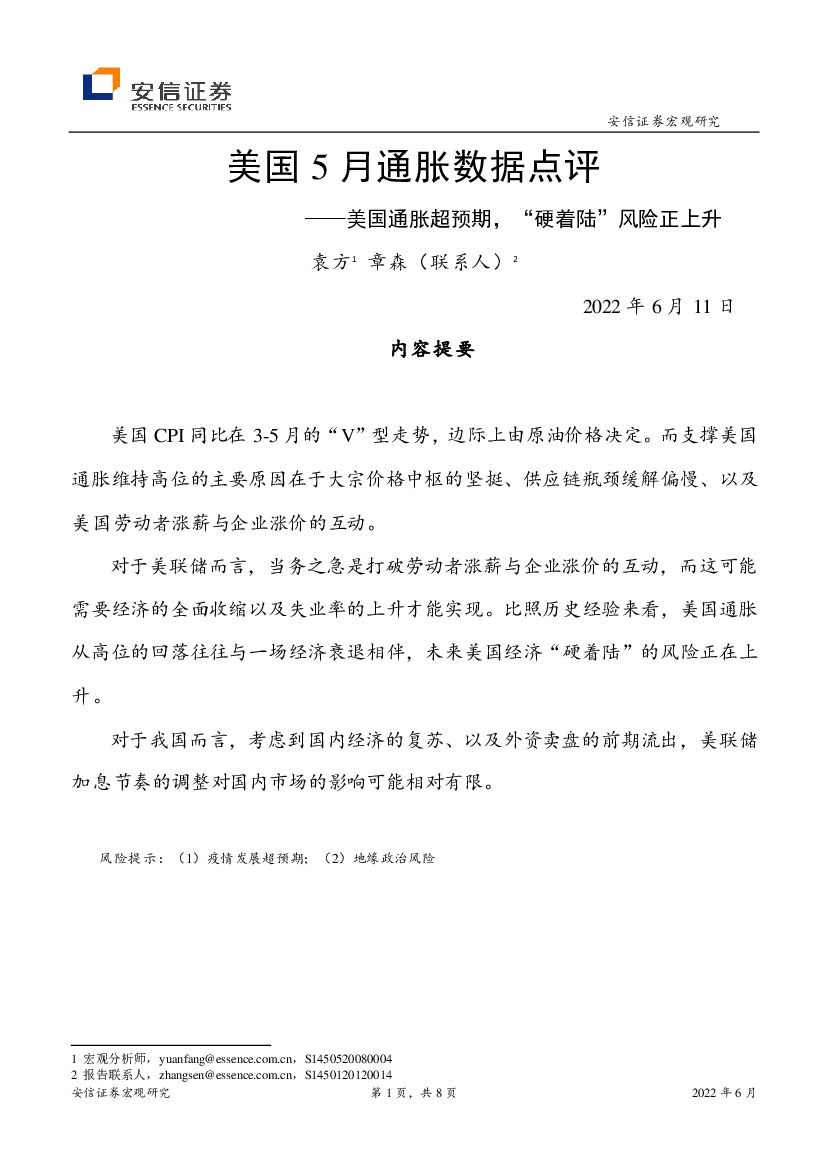 安信证券:美国5月通胀数据点评:美国通胀超预期,“硬着陆”风险正上升.pdf