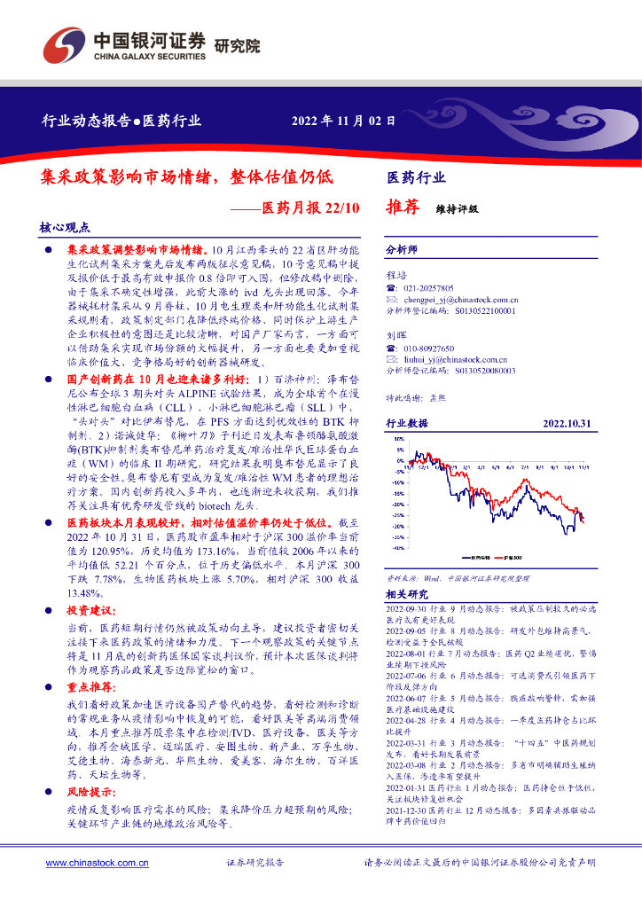 中国银河:医药月报22/10:集采政策影响市场情绪,整体估值仍低.pdf