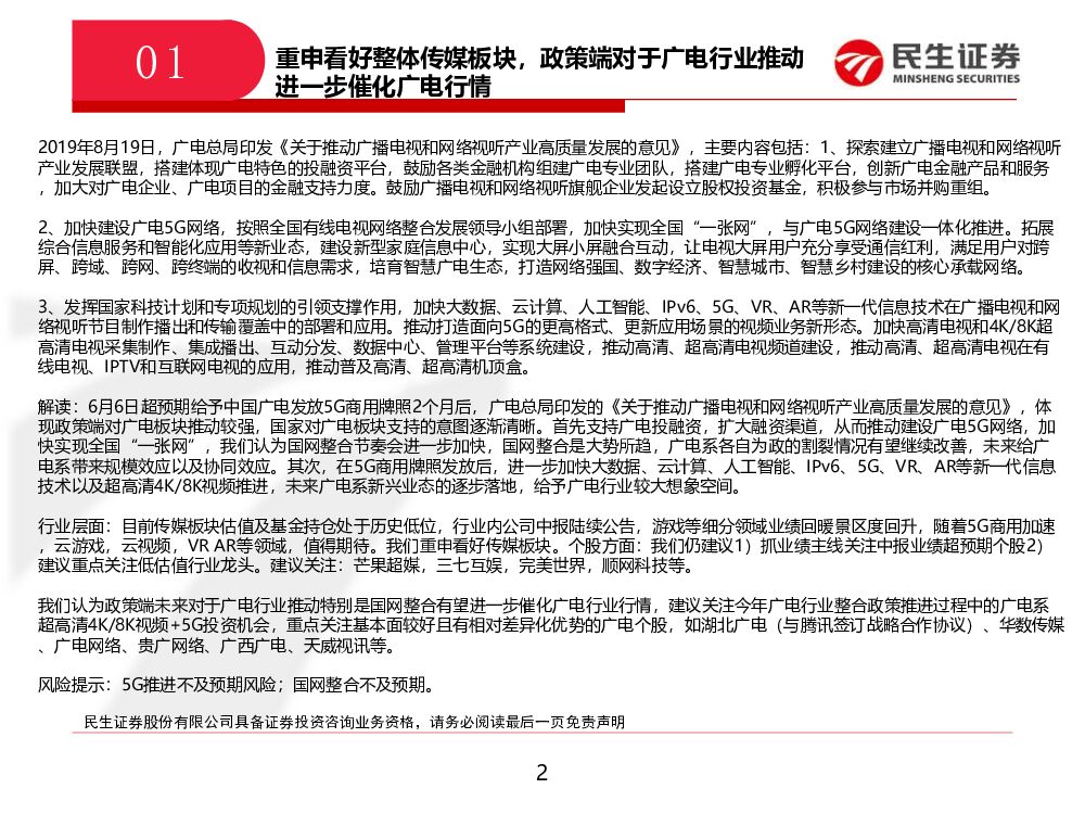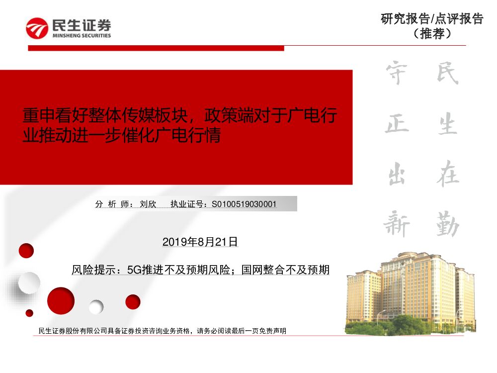 民生证券:传媒行业:重申看好整体传媒板块,政策端对于广电行业推动进一步催化广电行情.pdf