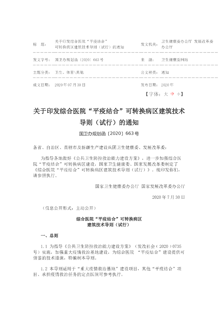 综合医院“平疫结合”可转换病区技术导则.doc