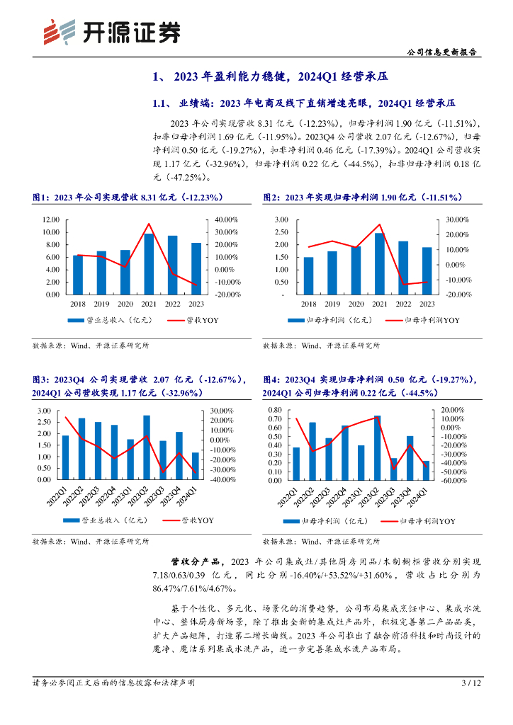 开源证券:帅丰电器(605336)-公司信息更新报告:2024Q1经营承压,看好中高端升级带动盈利提升.pdf