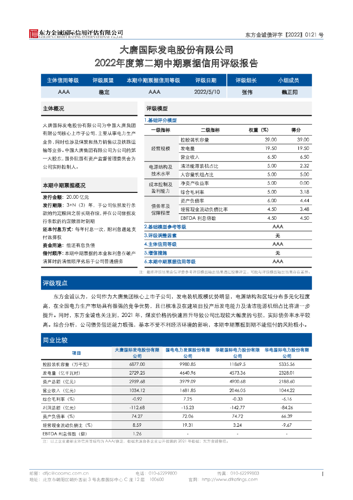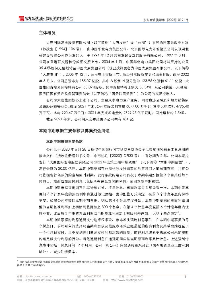 东方金诚:大唐国际发电股份有限公司2022年度第二期中期票据信用评级报告.pdf