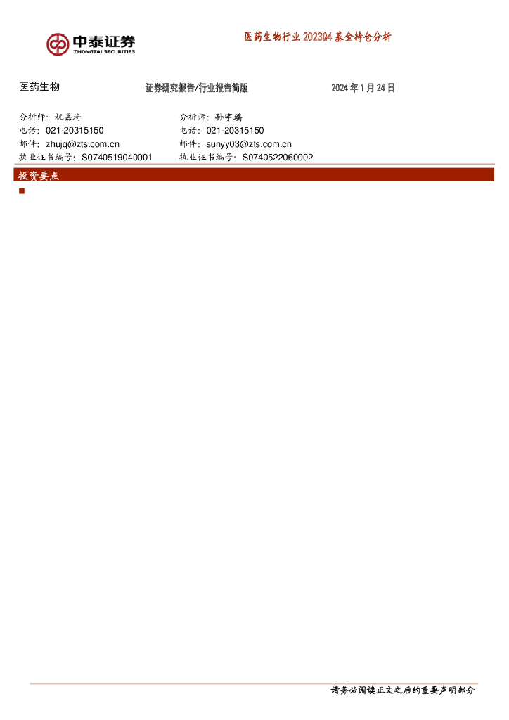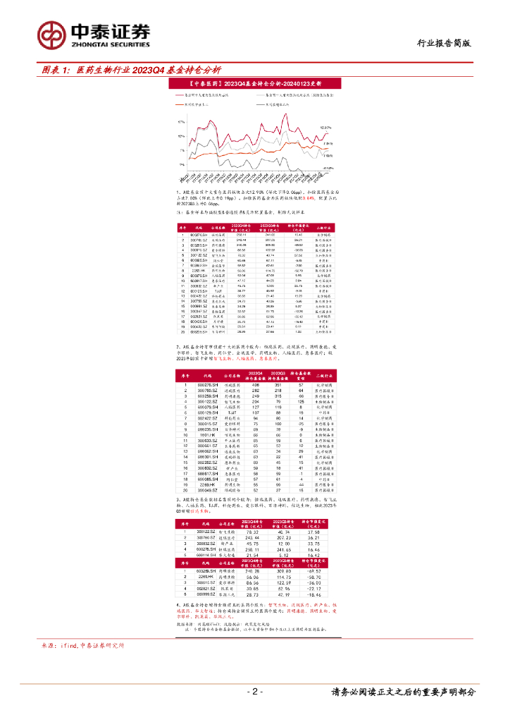 中泰证券:医药生物行业2023Q4基金持仓分析.pdf