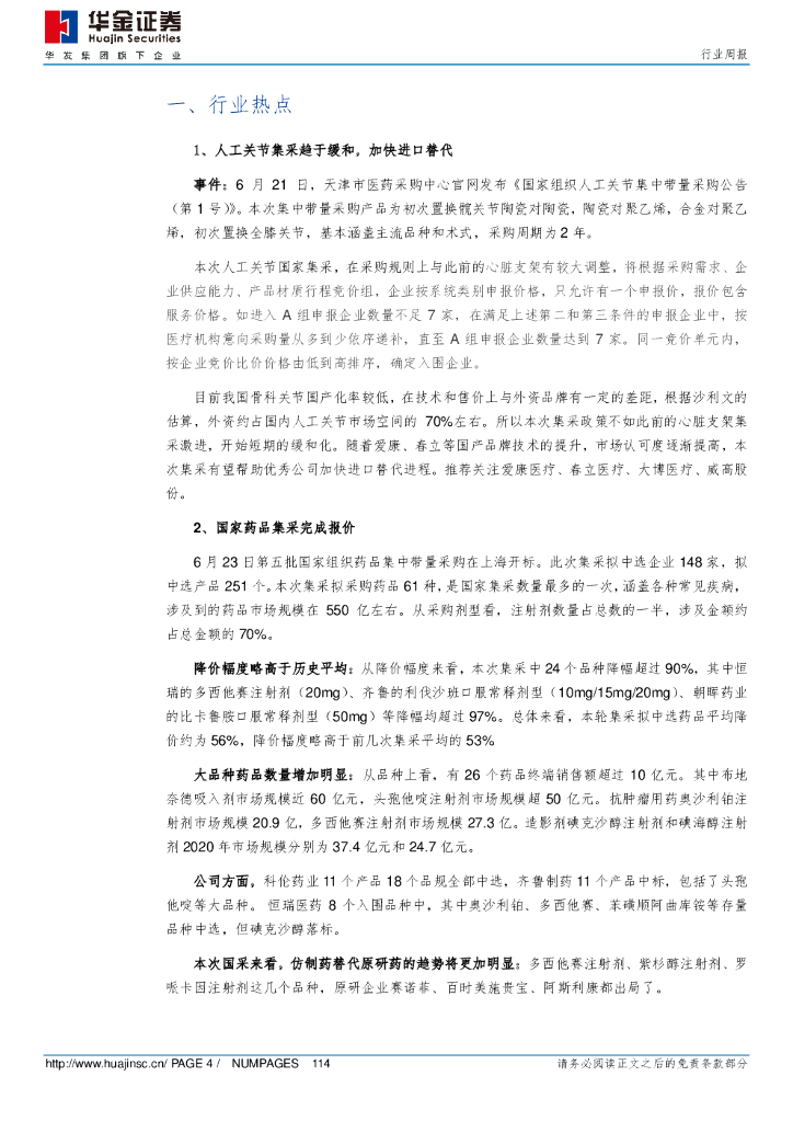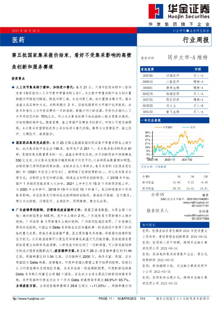 华金证券:医药行业周报:第五批国家集采报价结束,看好不受集采影响的高壁垒创新和服务赛道.pdf