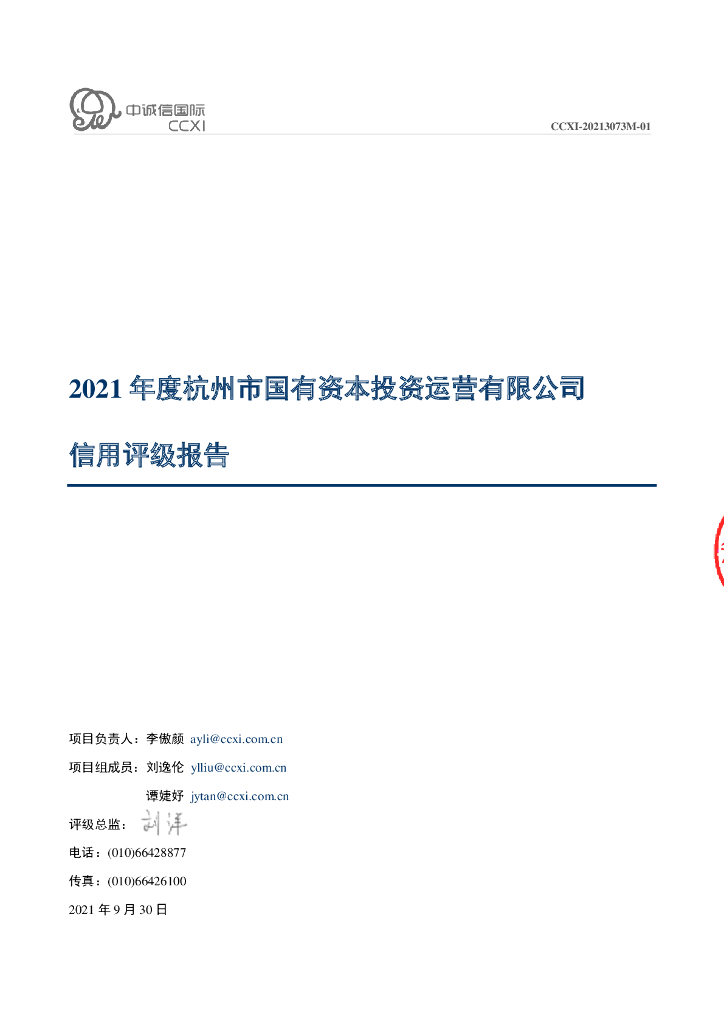 中诚信:杭州市国有资本投资运营有限公司2021年度信用评级报告.pdf