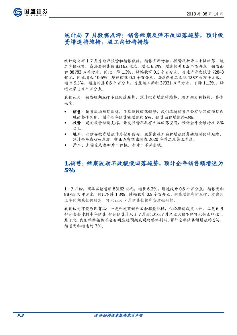 国盛证券:房地产开发:统计局7月数据点评:销售短期反弹不改回落趋势,投资增速下降空间有限.pdf