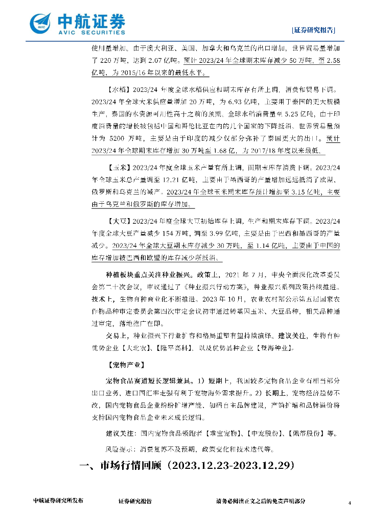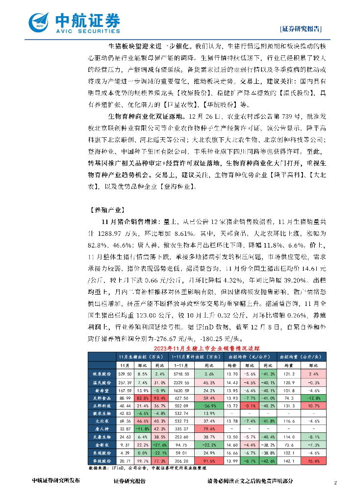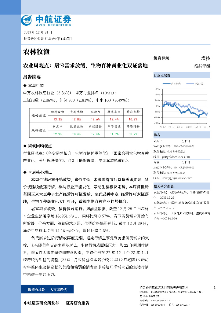 中航证券:农业周观点:屠宰需求放缓,生物育种商业化双证落地.pdf