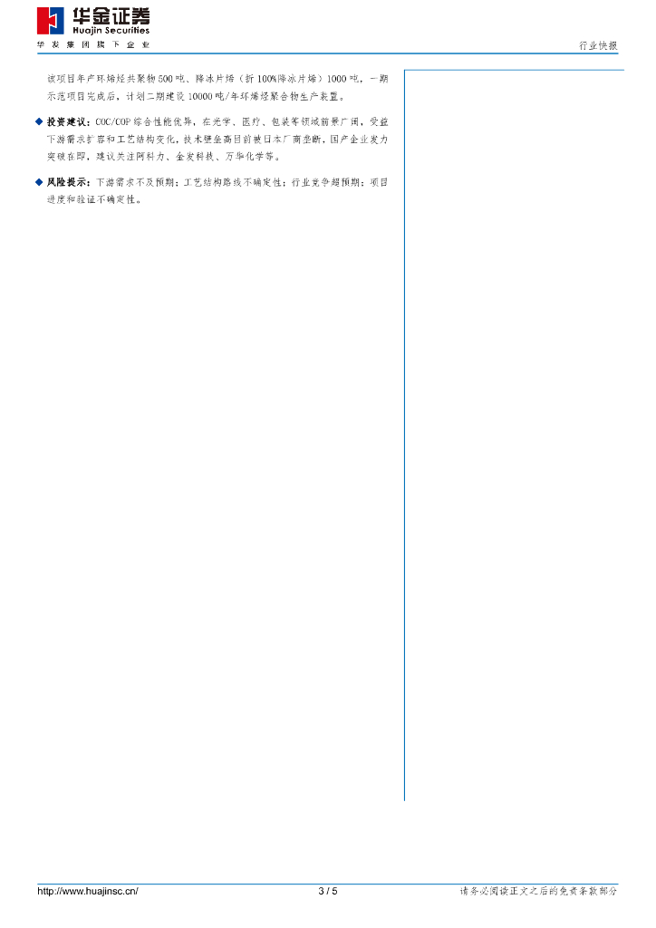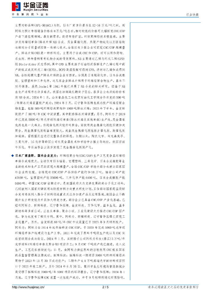 华金证券:合成树脂:COC/COP环烯烃聚合物前景广阔,国产替代提速.pdf