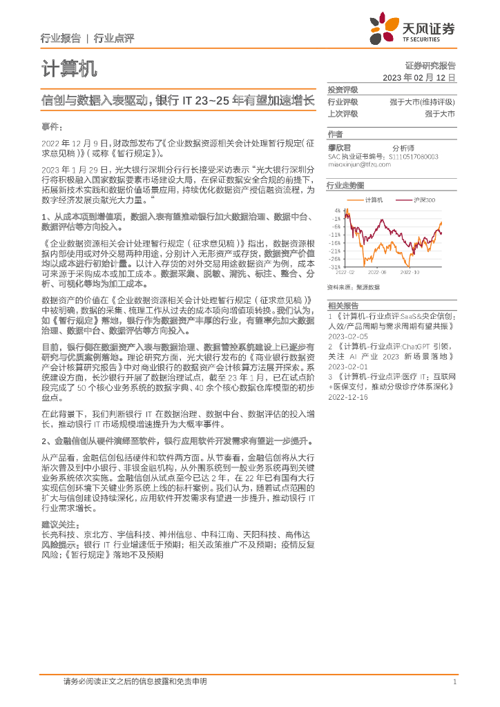 天风证券:计算机行业点评:信创与数据入表驱动,银行IT23~25年有望加速增长.pdf