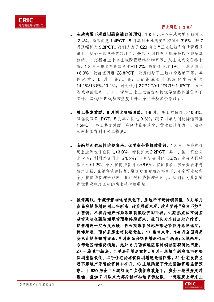 克而瑞证券:房地产行业周报:1-8月统计局数据点评,商品房单月销售增速创三年新高,土地购置下滑或因融资端监管预期.pdf