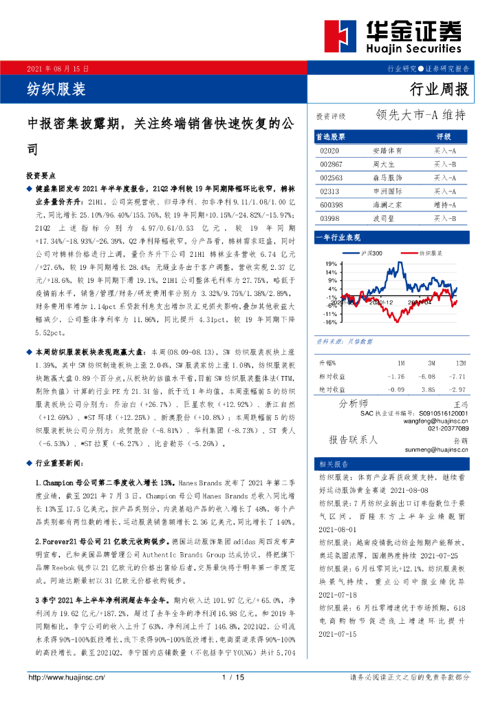 华金证券:纺织服装行业周报:中报密集披露期,关注终端销售快速恢复的公司.pdf