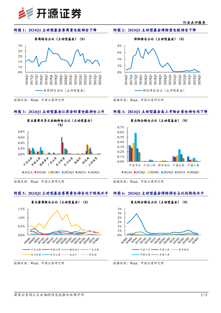 开源证券:2024Q1基金非银重仓点评:保险和券商持仓降至低位,高股息再获加仓.pdf