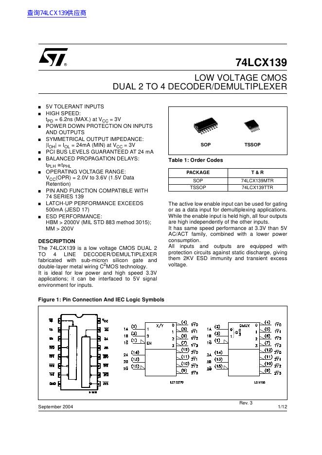 ST 74LCX139 LOW VOLTAGE CMOS DUAL 2 TO 4 DECODER/DEMULTIPLEXER 数据手册.pdf