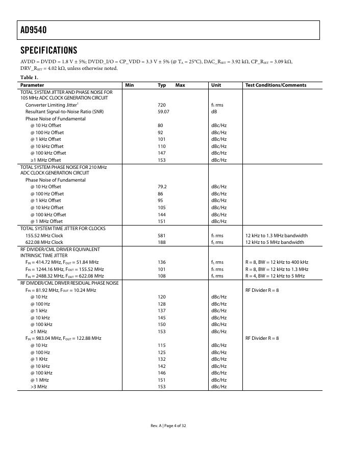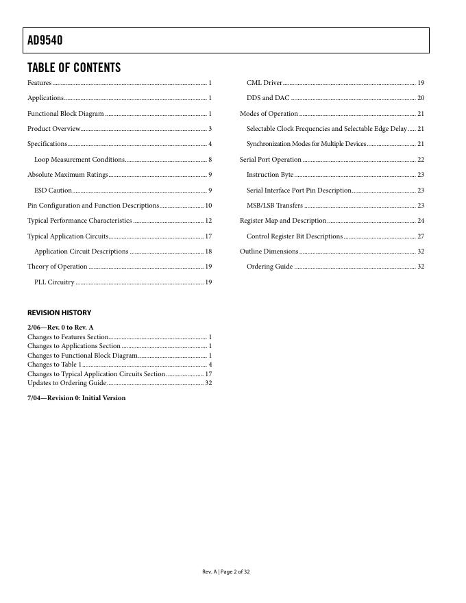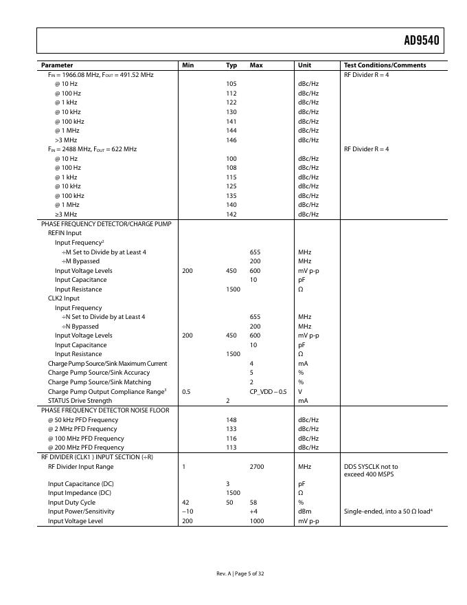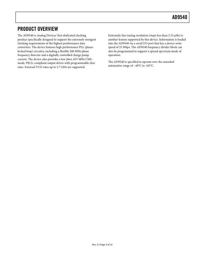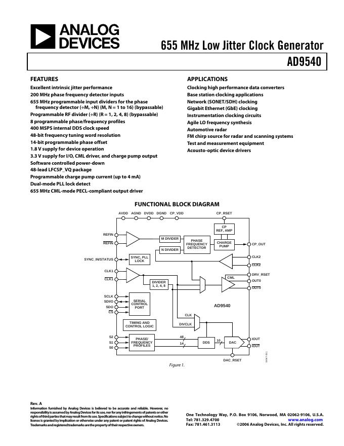 ANALOG DEVICES 655 MHz Low Jitter Clock Generator AD9540 英文产品 数据手册 Rev A.pdf