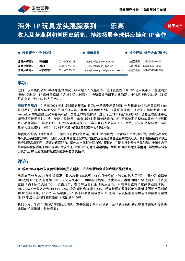 国信证券:海外IP玩具龙头跟踪系列——乐高:收入及营业利润创历史新高,持续拓展全球供应链和IP合作.pdf