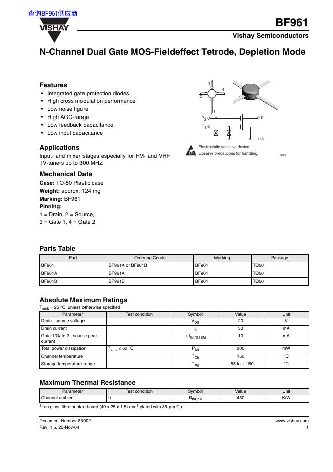 VISHAY BF961 数据手册.pdf