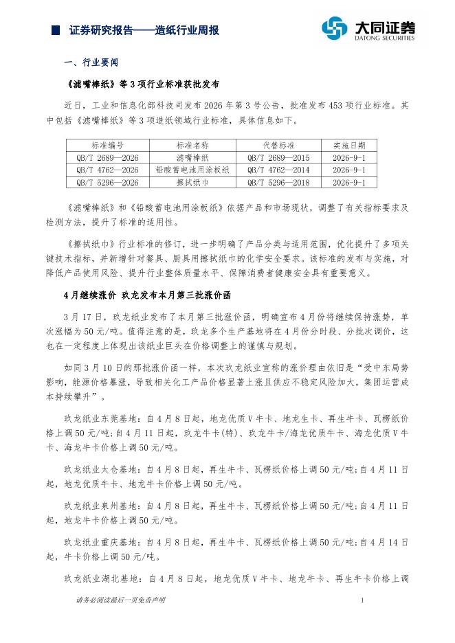 大同证券:造纸行业周报:浆价下行,纸浆库存去化.pdf