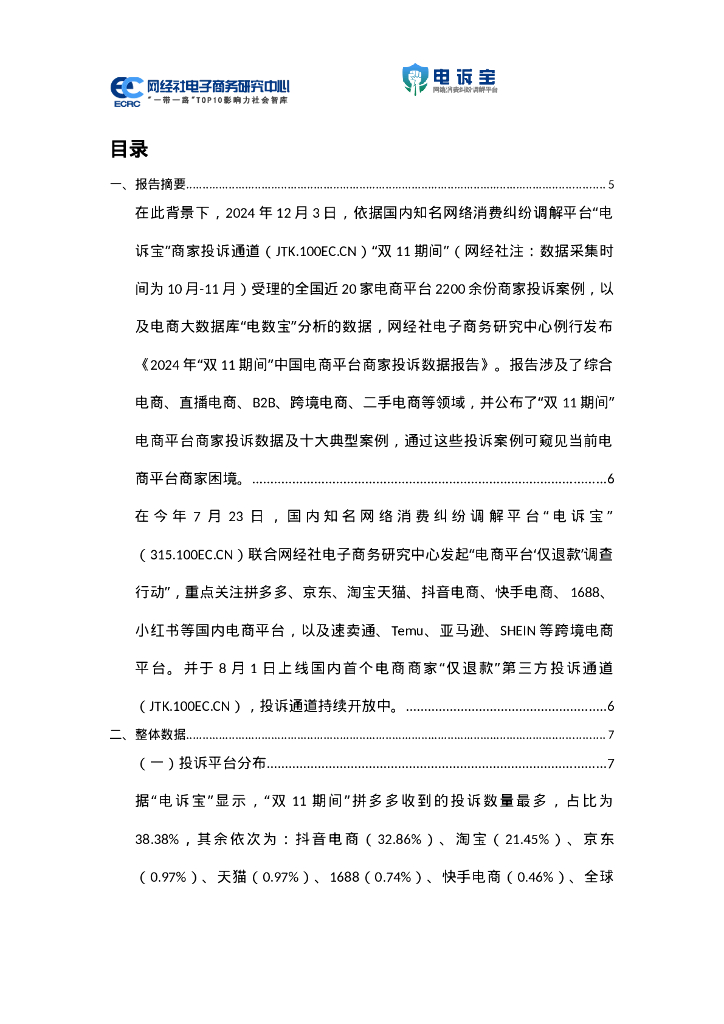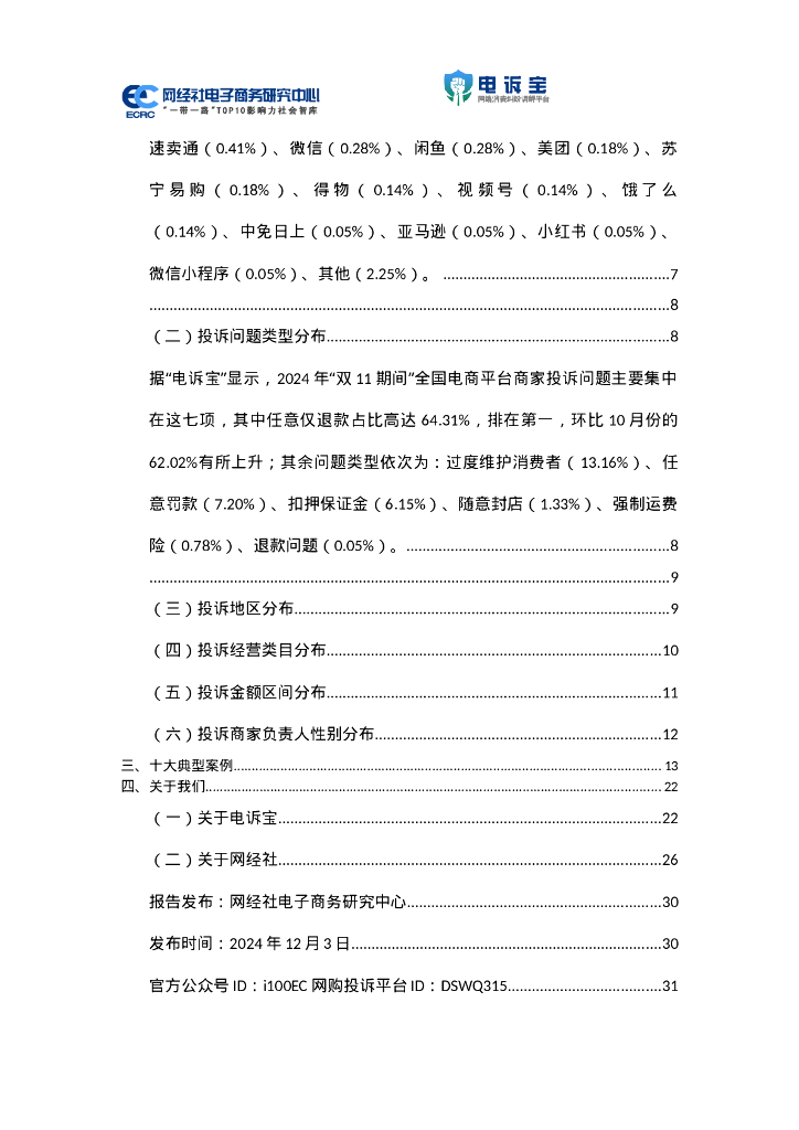 网经社:2024年“双11期间”中国电商平台商家投诉数据报告.doc