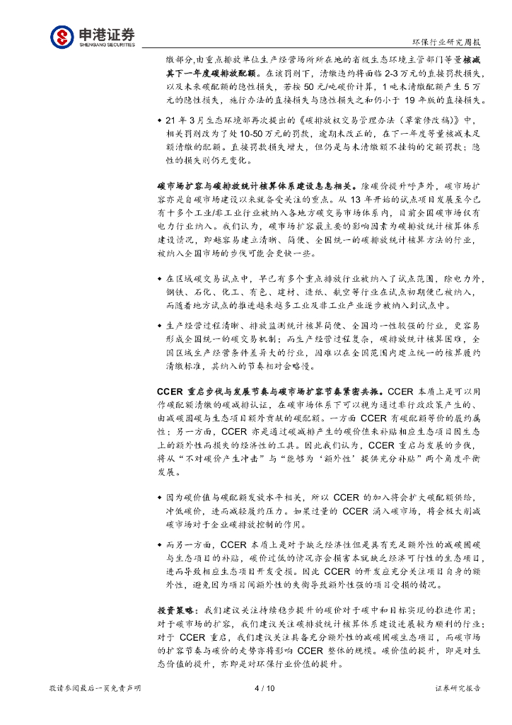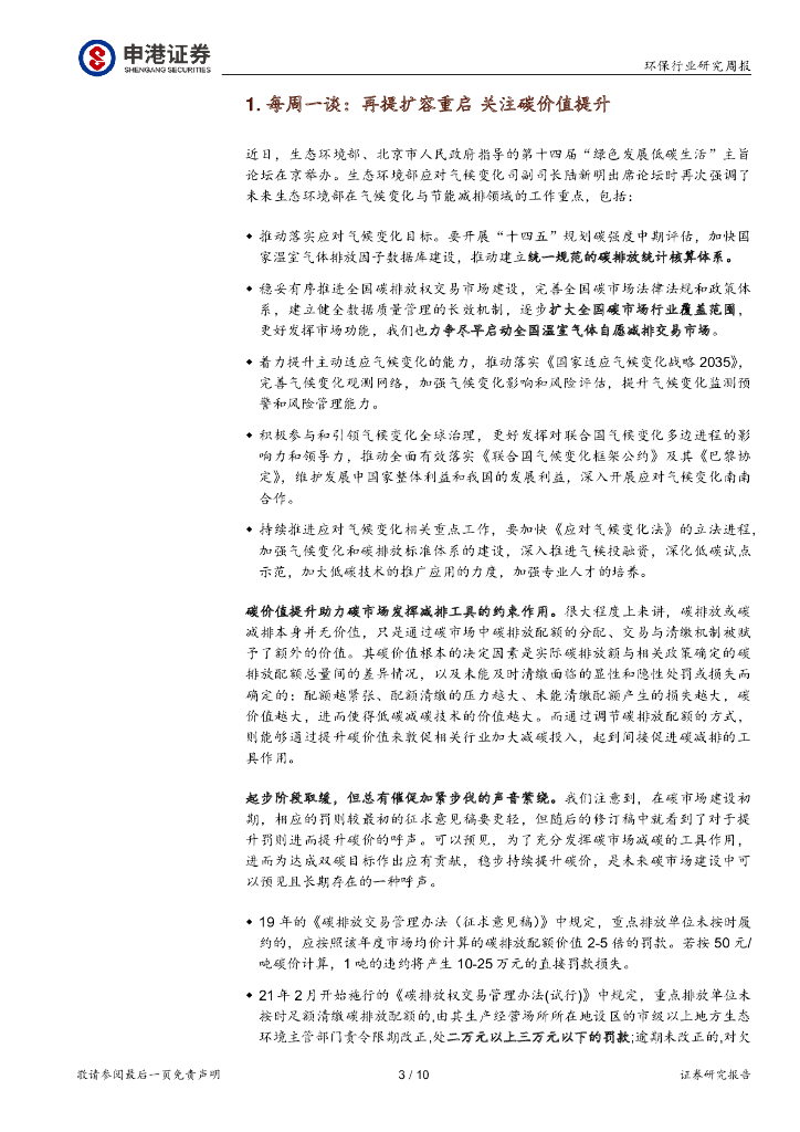 申港证券:环保行业研究周报:再提扩容重启 关注碳价值提升.pdf