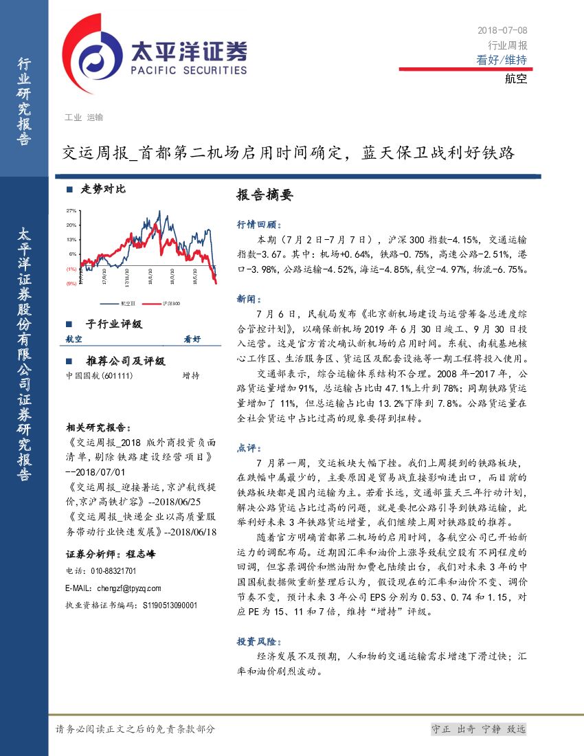 太平洋证券:交运周报:首都第二机场启用时间确定,蓝天保卫战利好铁路.pdf