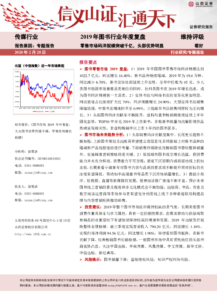 山西证券:传媒行业:2019年图书行业年度复盘-零售市场码洋规模突破千亿,头部优势明显.pdf
