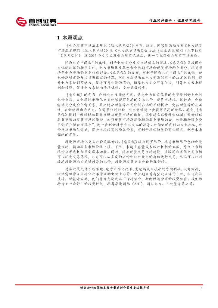 首创证券:公用事业行业简评报告:《电力现货市场基本规则(征求意见稿)》发布.pdf