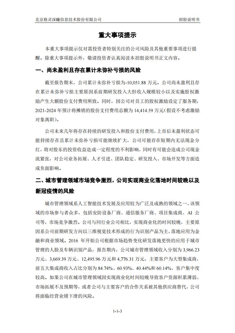 AI独角兽DeepGlint格灵深瞳IPO上市招股说明书:3年亏损4个亿,人力成本高、客户集中.pdf