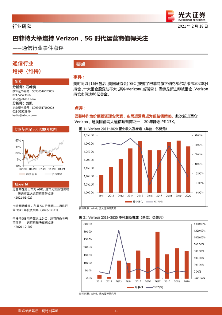 光大证券:通信行业事件点评:巴菲特大举增持Verizon,5G时代运营商值得关注.pdf