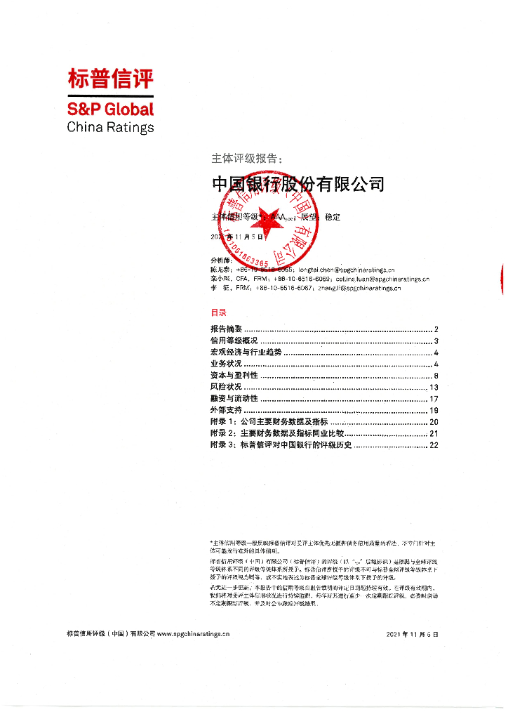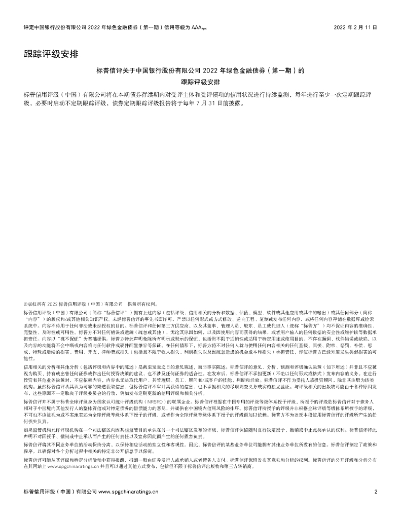 标普信评:中国银行股份有限公司2022年绿色金融债券(第一期)信用评级报告及跟踪评级安排说明.pdf