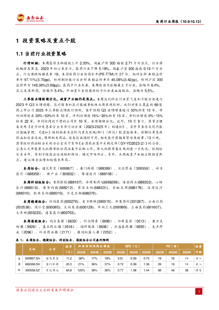 西南证券:医药行业周报:三季报业绩持续分化,减重产业链仍是焦点.pdf