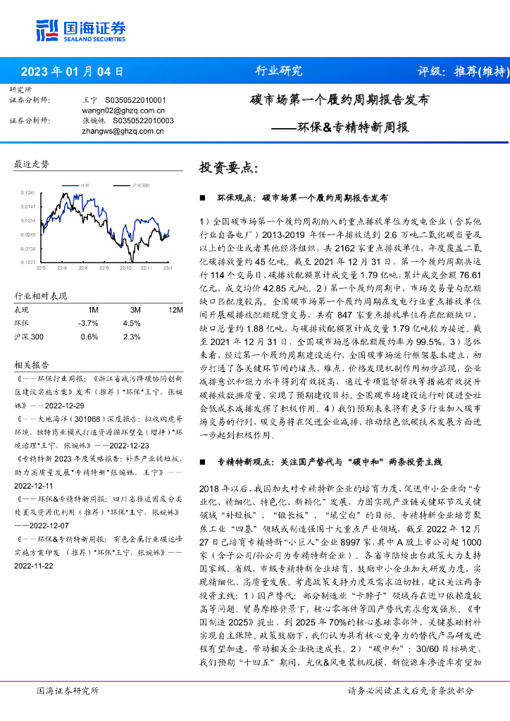 国海证券:环保&专精特新周报:碳市场第一个履约周期报告发布.pdf