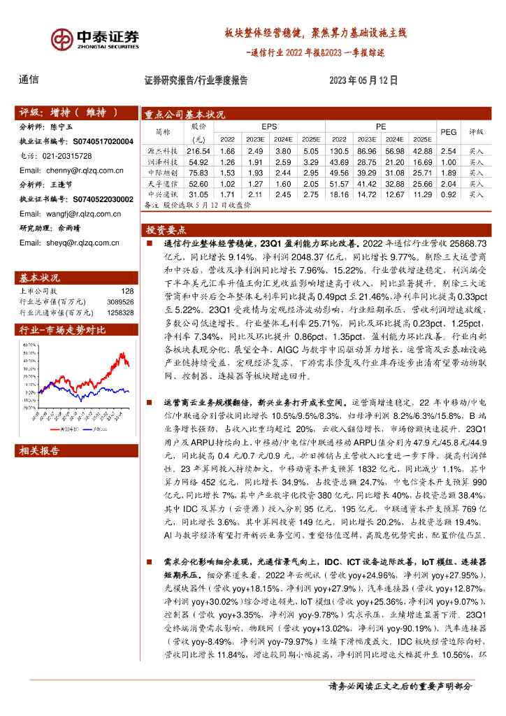 中泰证券:通信行业2022年报&2023一季报综述:板块整体经营稳健,聚焦算力基础设施主线.pdf