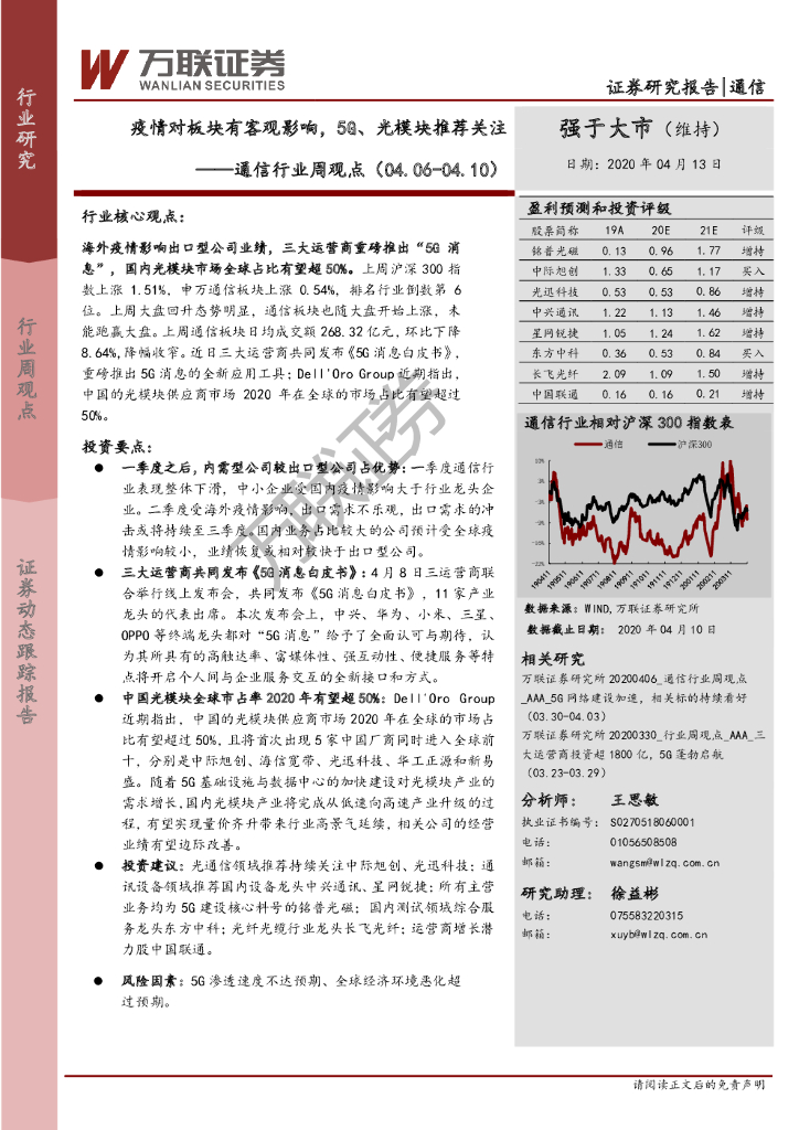 万联证券:通信行业周观点:疫情对板块有客观影响,5G、光模块推荐关注.pdf