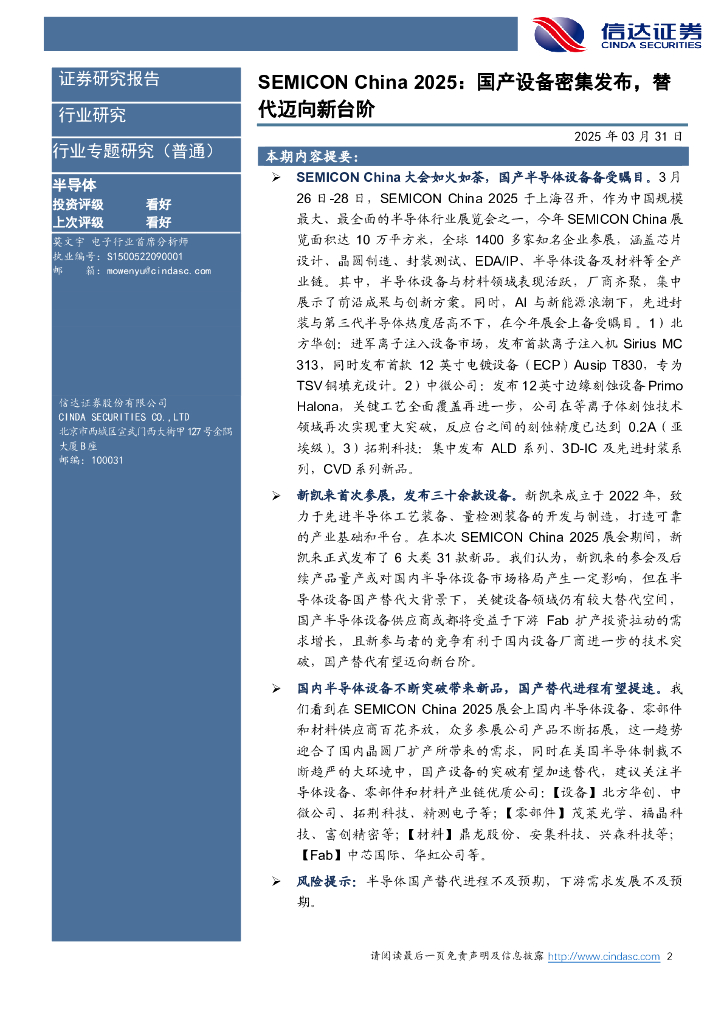 信达证券:半导体行业专题研究(普通):SEMICONChina2025:国产设备密集发布,替代迈向新台阶.pdf