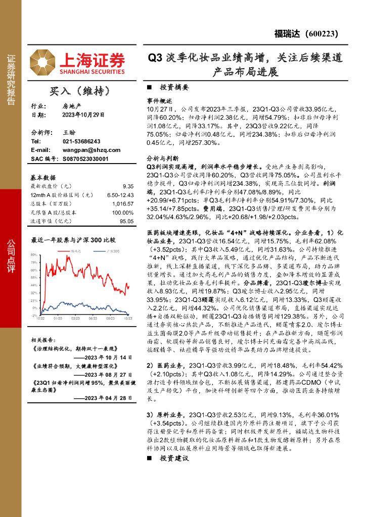 上海证券:福瑞达(600223)-Q3淡季化妆品业绩高增,关注后续渠道产品布局进展.pdf