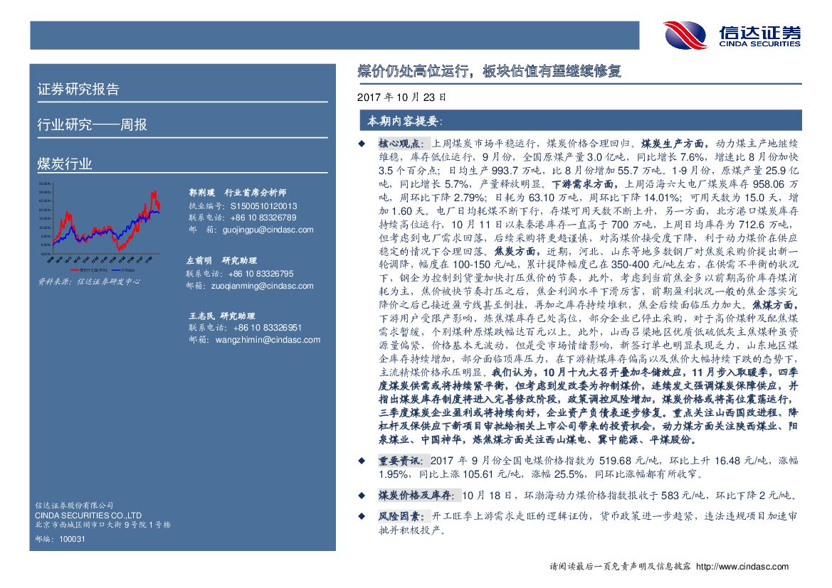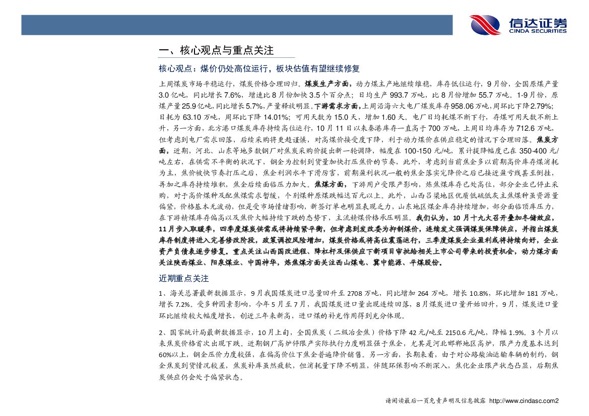 信达证券:煤炭行业周报:煤价仍处高位运行,板块估值有望继续修复.pdf
