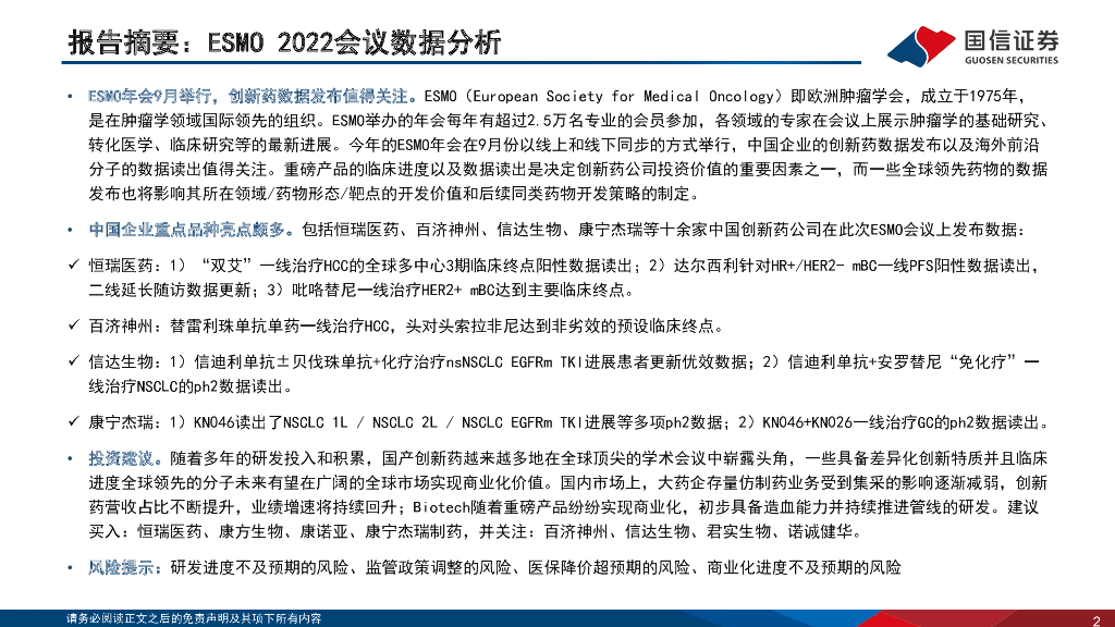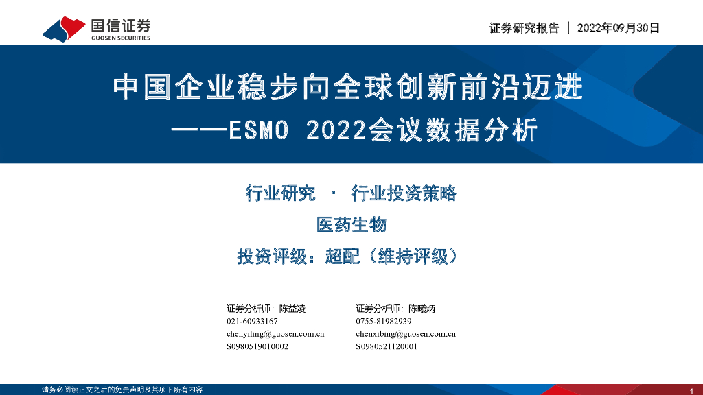国信证券:医药生物:ESMO 2022会议数据分析-中国企业稳步向全球创新前沿迈进.pdf