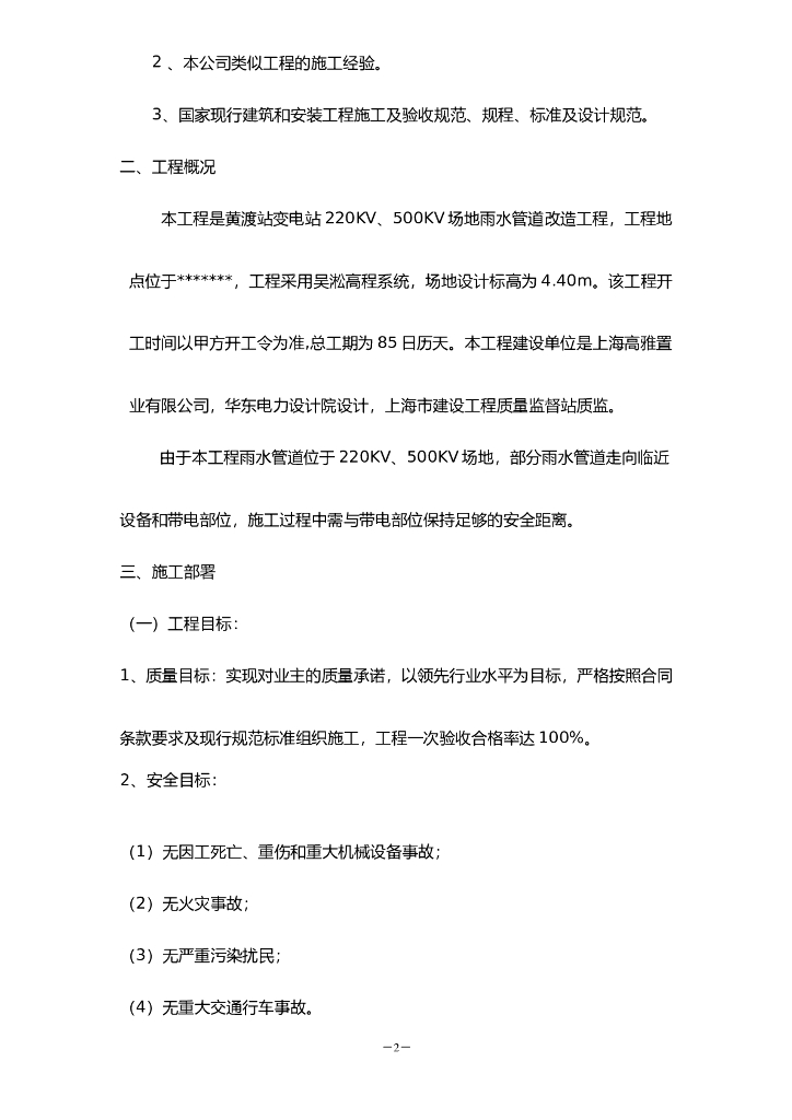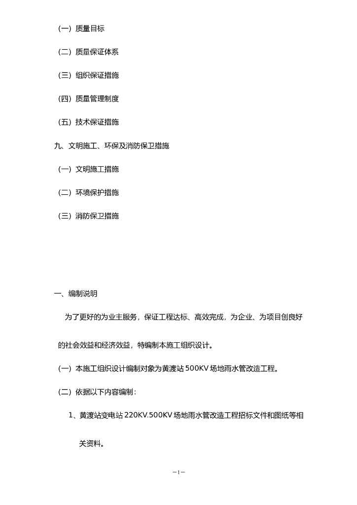 黄渡站变电站220KV、500KV场地雨水管道改造工程(Word.24页).doc