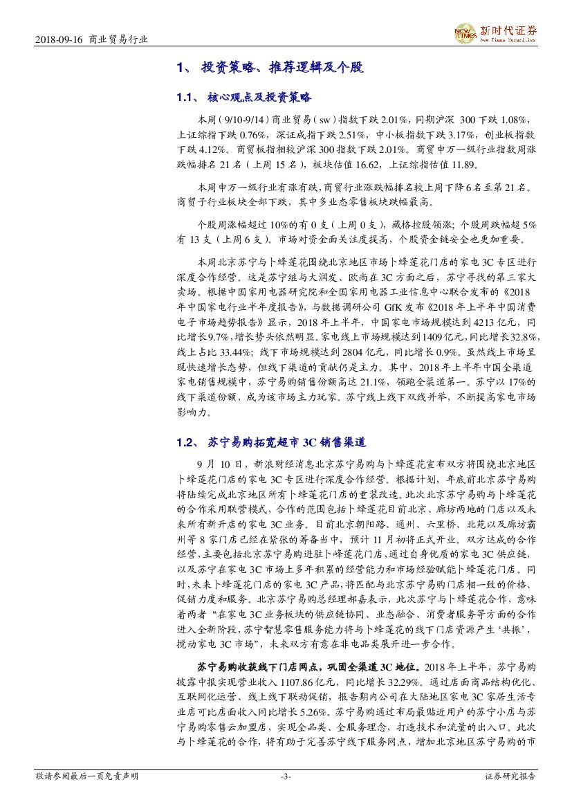 新时代证券:商业贸易行业研究周报:苏宁易购拓宽超市3C销售渠道 双线并举提高家电市场份额.pdf