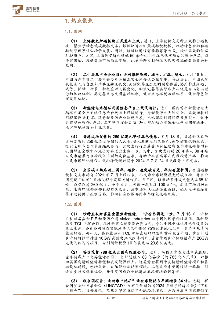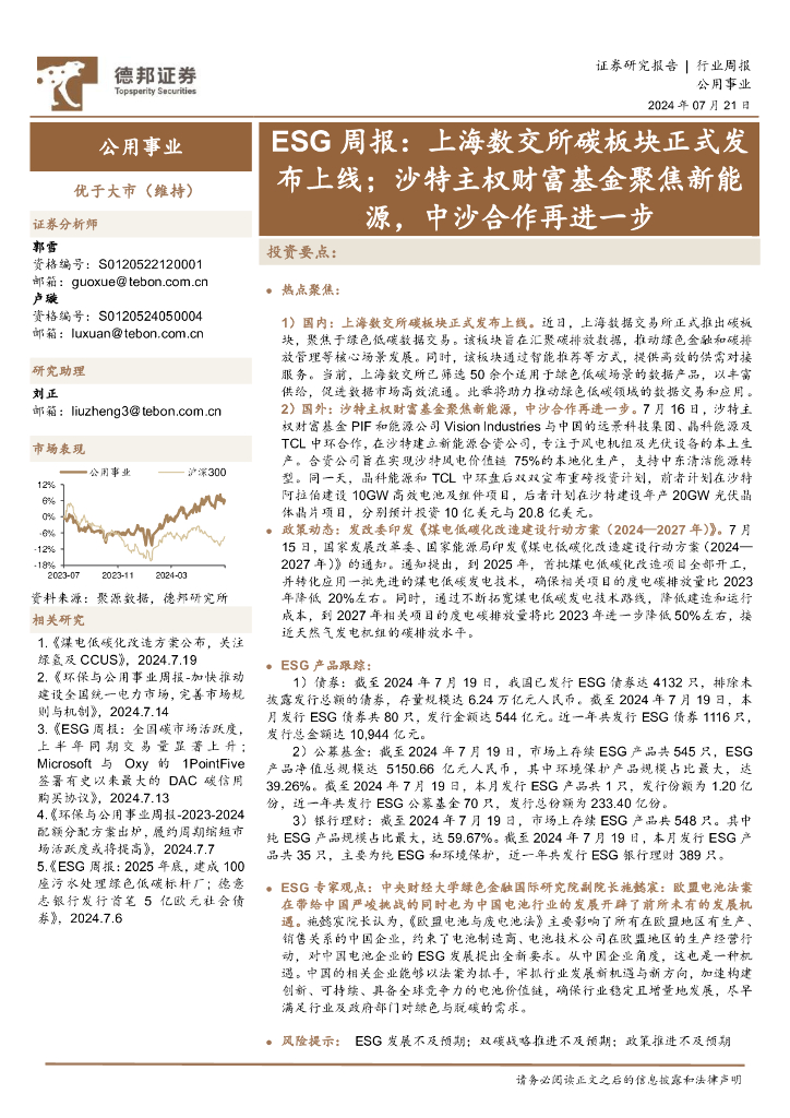德邦证券:公用事业行业ESG周报:上海数交所碳板块正式发布上线;沙特主权财富基金聚焦新能源,中沙合作再进一步.pdf