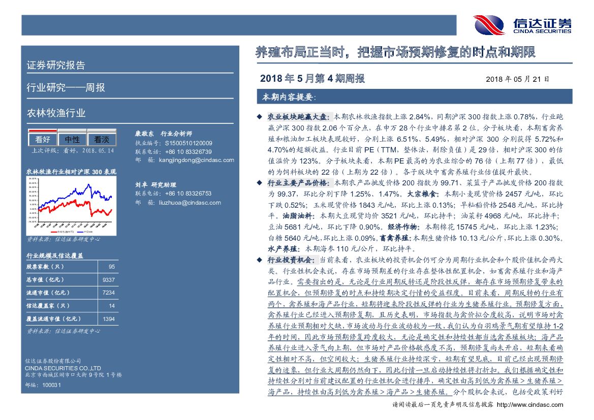 信达证券:农林牧渔2018年5月第4期周报:养殖布局正当时,把握市场预期修复的时点和期限.pdf
