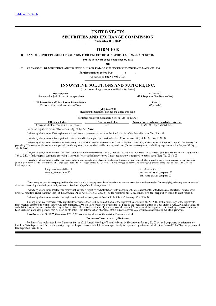 Innovative Solutions and Support, Inc.(ISSC)2022财年年度报告(英文版).pdf