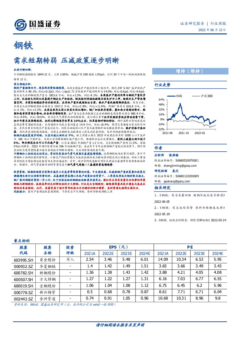 国盛证券:钢铁行业周报:需求短期转弱 压减政策逐步明晰.pdf